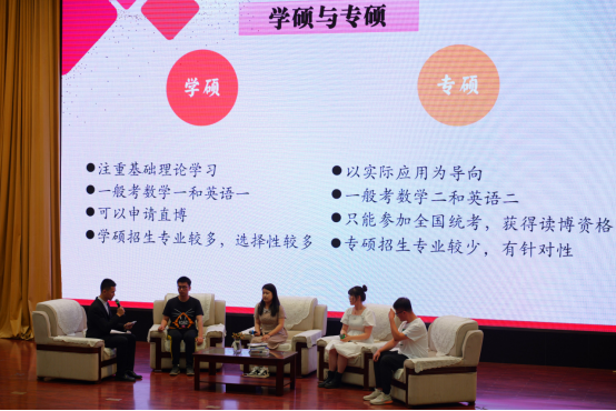 本次交流会分别邀请了在2023年研究生入学考试中成功考取南京邮电大学的蒋天遂、成都理工大学的王艺儒、沈阳工业大学的翟佼以及考取bevictor伟德官网的王超四位同学作为分享嘉宾。几位同学分别从专硕与学硕的区别,如何安排考研时间,如何选择目标院校专业以及考取本校研究生的优势等几方面做了详细介绍。