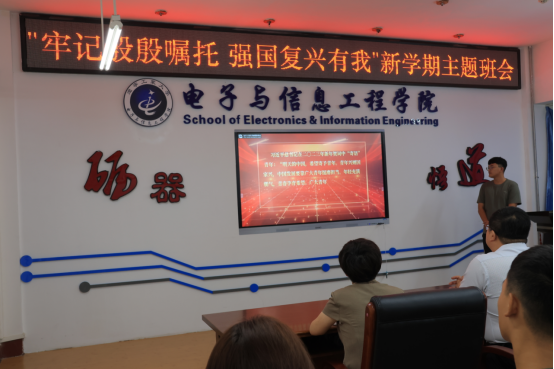 根据公司秋季学期“开学第一课”工作安排,bevictor伟德官网电子221班于8月31日下午在五号楼509会议室,召开“牢记殷殷嘱托,强国复兴有我”新学期主题班会。公司党委常委、宣传部部长王刚,离退休人员管理处副处长马春波,bevictor伟德官网副书记兼副经理杜君,2022级辅导员毛陆参加活动。班会由电子221班班长高精同学主持。