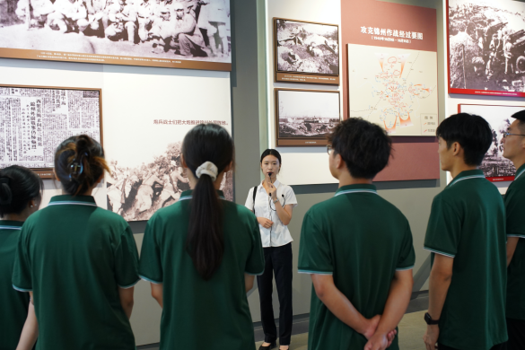 启程仪式上,畅普联盟团队首站来到配水池战斗遗址陈列馆。这里不仅是历史的见证,更是精神的传承。讲解员以标准流利的普通话引领着团队成员深入历史的脉络,普通话在这里,不仅仅是一种沟通的工具,它更是一座连接过去与现在,传递历史与文化的坚实桥梁。在陈列馆内,一幅幅历史图画映入眼帘,全息投影的历史画面更是将大家带回到了那个硝烟弥漫的年代,使队员们仿佛亲眼见证了革命先烈们为民族独立和人民幸福而进行的英勇斗争。