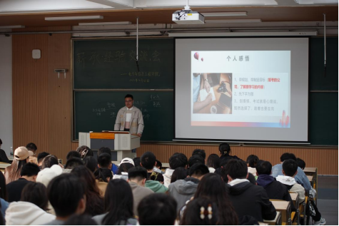 在研学考博方面,张严同学从学习规划,博士申报流程,论文投稿方法等方面分享科研路上的经验与心得,为学弟学妹们提供了宝贵的研学经验,引导同学们树立科研目标,提高学习效率,以更加坚定饱满的信念向着更高的目标扬帆起航,努力拼搏。