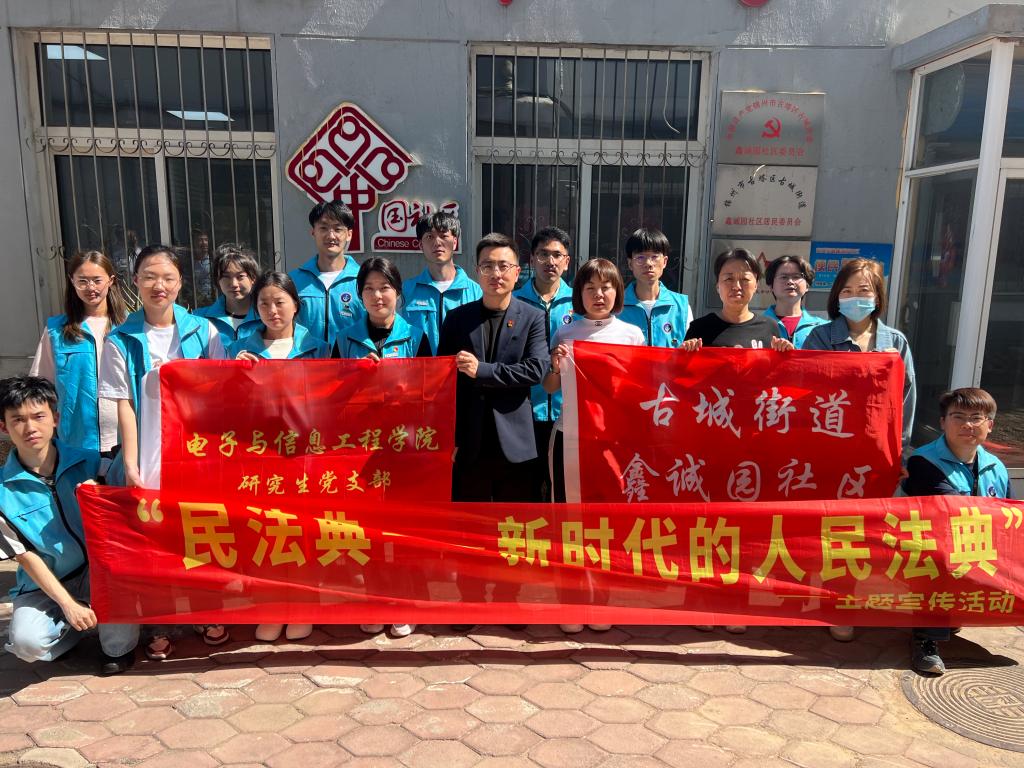 5月30日,伟德官网bv1946研究生党支部赴古城街道鑫诚园社区开展民法典宣传活动。社区书记刘鑫鑫、研究生党支部书记奚汇、居民和研究生党员代表参加了活动。