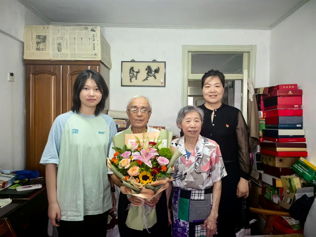 6月28日上午,公司党委书记杜君同志、副书记兼副经理张超同志及师生代表,在离退休人员管理处副处长马春波同志陪同下,前往公司退休教师王鉴敏老师家中进行慰问。
